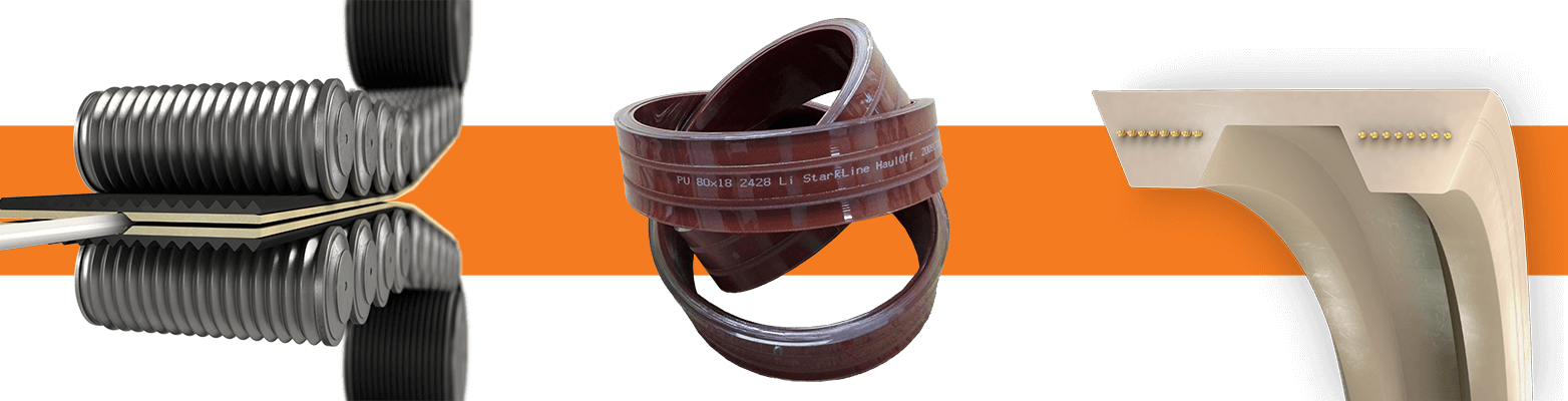 Curelele trapezoidale nu funcționează doar ca și curele de transmisie, ci și ca și curele pentru deplasarea produselor, presarea lor, ambalarea și sortarea lor. Realizăm curele pentru mașini unice sau folosite.